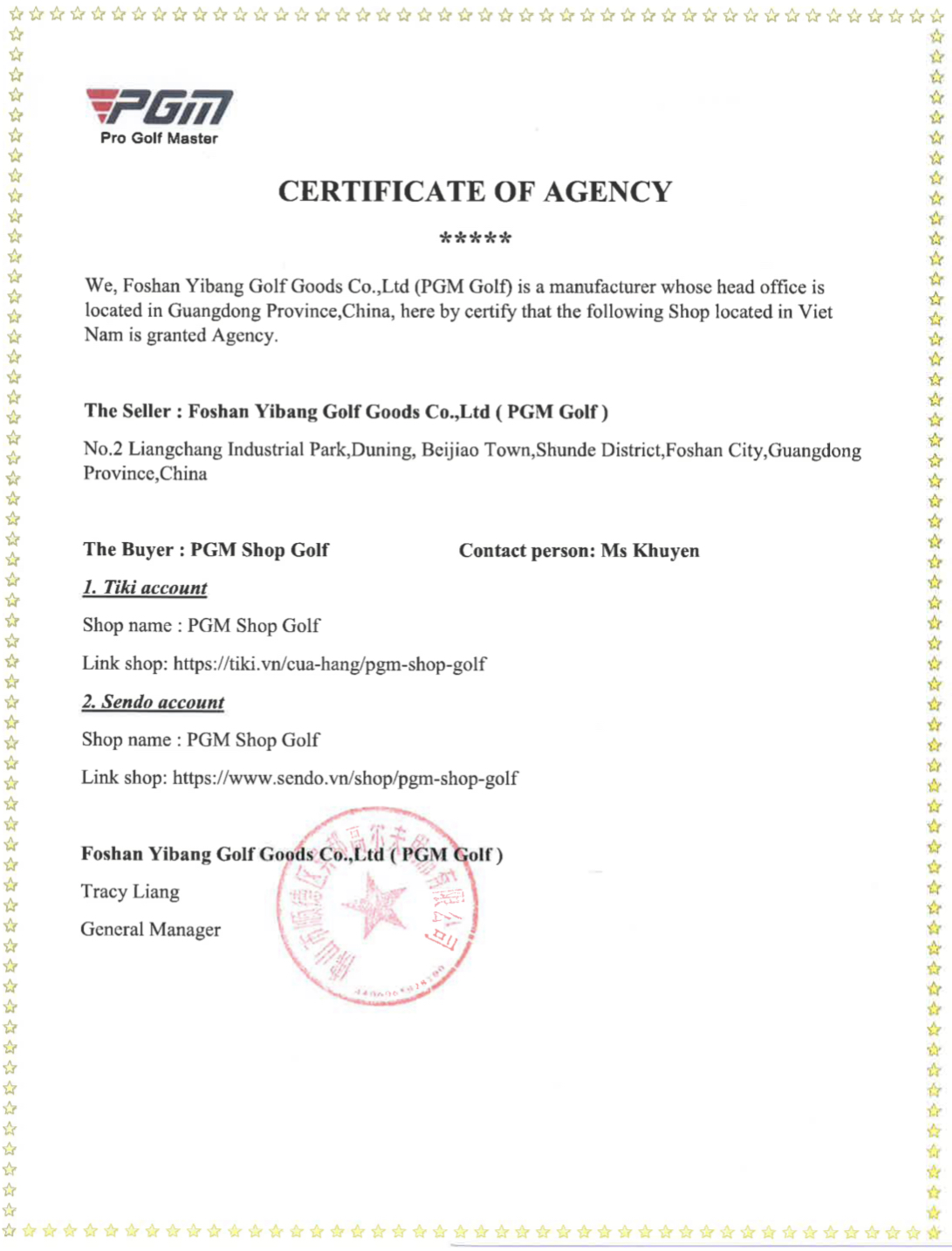 - Thiết kế chắc chắn, bền đẹp, có thể gấp gọn thanh trả bóng khi không sử dụng. PGM Shop Golf rất vinh dự được Tổng quản lý Ms.Tracy Liang đại diện cho công ty Foshan Yibang Golf Goods Co.,Ltd (PGM Golf) tại Trung Quốc cấp chứng nhận Đại lý bán hàng chính hãng PGM tại Việt Nam. PGM Shop Golf luôn hướng tới mục tiêu mang những sản phẩm chất lượng tốt nhất với giá thành hợp lý nhất tới khách hàng. Mọi sự góp ý của quý khách chính là chìa khóa giúp PGM Shop Golf trưởng thành và lớn mạnh hơn. Xin cảm ơn! Sản phẩm này là tài sản cá nhân được bán bởi Nhà Bán Hàng Cá Nhân và không thuộc đối tượng phải chịu thuế GTGT. Do đó hoá đơn VAT không được cung cấp trong trường hợp này.
