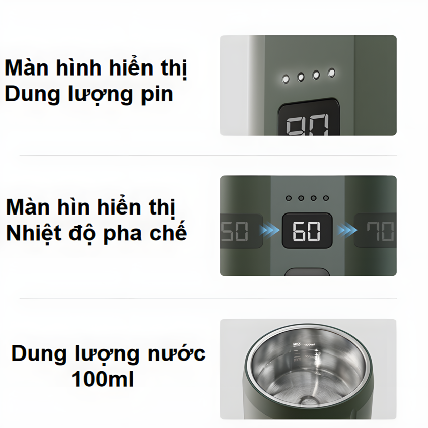 - Pha cà phê Nóng không cần cắm nguồn, sử dụng pin để pha chế