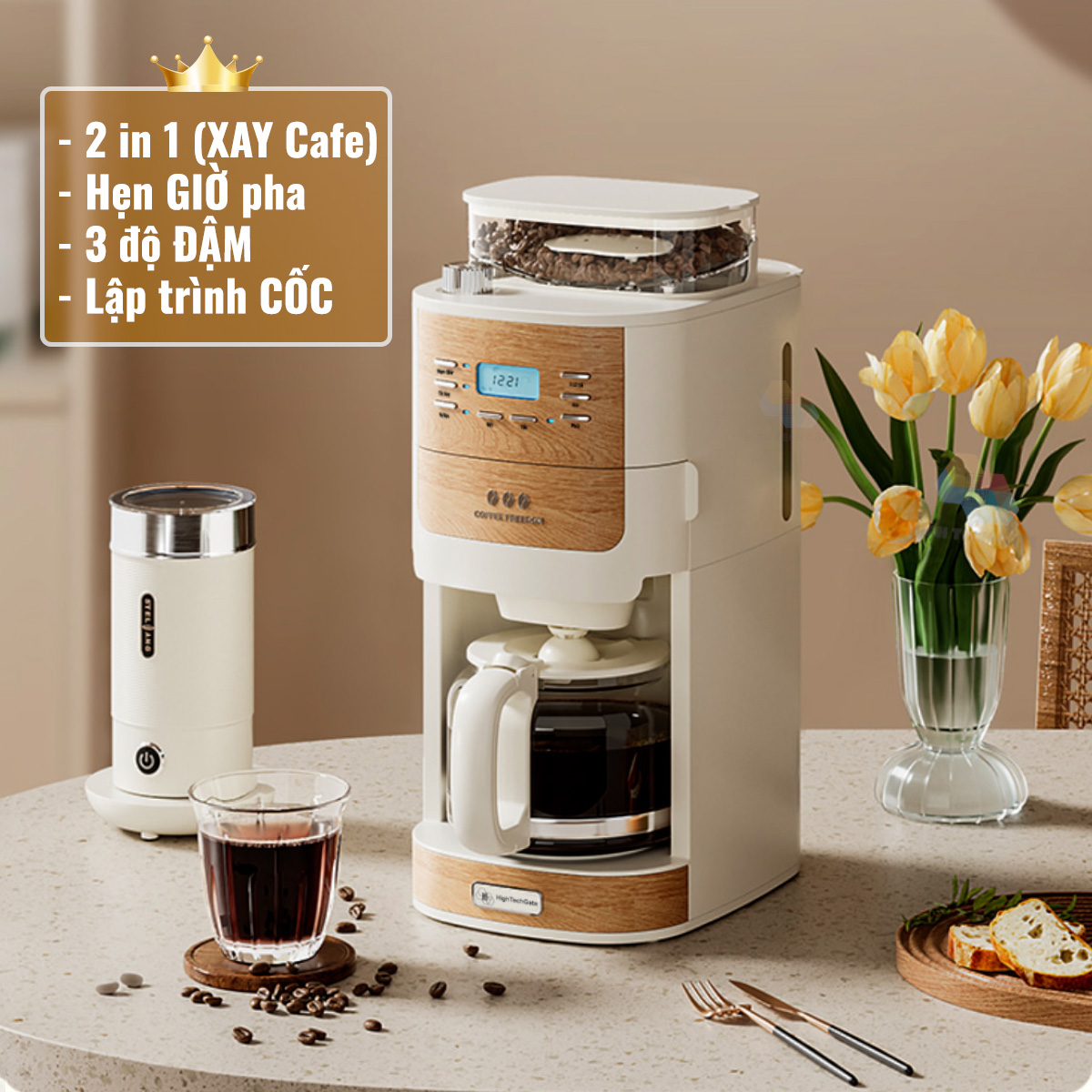 Máy Pha Cà Phê CF06 Tự Động Vừa Xay, Vừa Pha 2 Trong 1, Hẹn Giờ Pha Thông Minh, Xay Cafe Lưỡi Nón