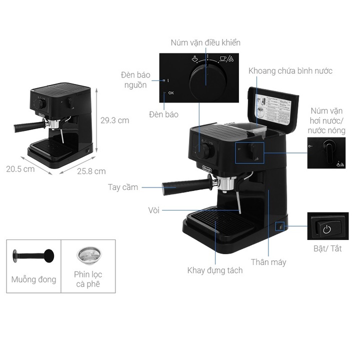 Mua tại TiktokMáy pha cà phê Delonghi EC235.BK công suất 1100W, pha Espresso đánh bọt sữa capuchino, latte - Hàng nhập khẩu Delonghi là một thương hiệu chuyên sản xuất đồ gia dụng lâu đời đến từ nước Ý, được thành lập từ năm 1902. Đến nay, sau hơn 100 năm hình thành và phát triển, Delonghi là cái tên được đánh giá cao và vươn mình khẳng định vị trí hàng đầu trong ngành sản xuất đồ gia dụng. Các thiết kế của Delonghi đều mang đậm phong cách Ý cổ điển sang trọng, được người tiêu dùng đặc biệt yêu thích.