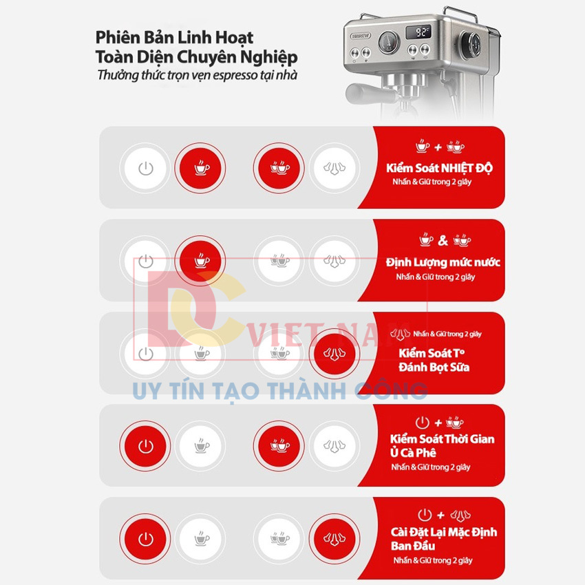 - Tích hợp đồng hồ áp suất kiểm soát shot cafe espresso