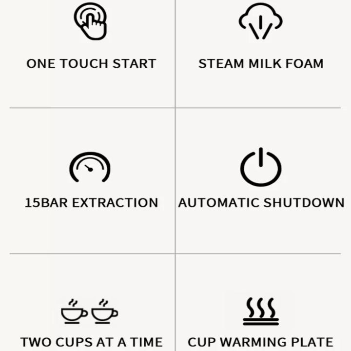 - Áp suất 15 bar tạo ra một ly Espresso với hương thơm đậm đà và lớp kem màu hạt ở trên.