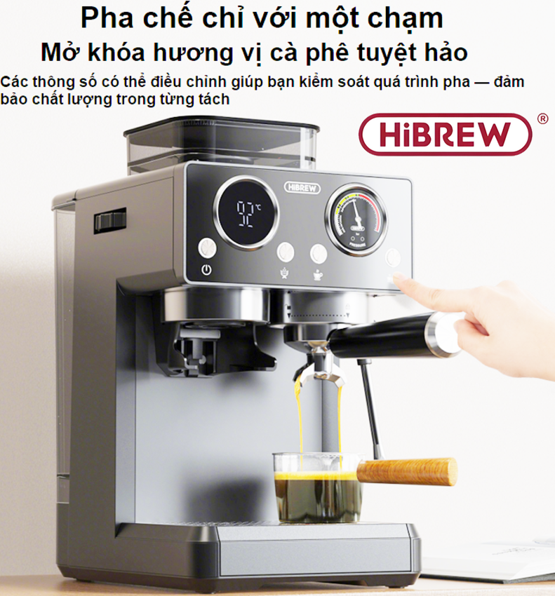 Máy pha cà phê bán tự động kiêm xay cà phê 15 chế độ Espresso, Cappuccino, Latte thương hiệu Mỹ cao cấp HiBREW H14 - Hàng Nhập Khẩu Máy pha cà phê Espresso 3 trong