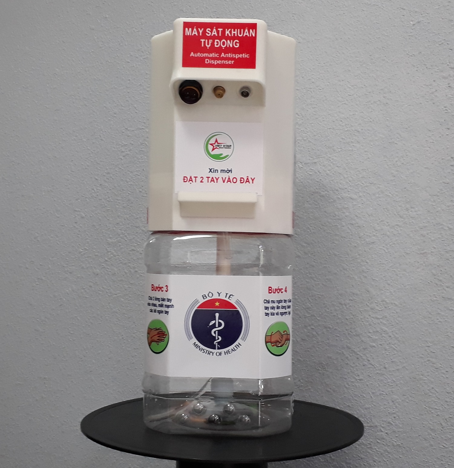 Mua tại TiktokMáy phun dung dịch sát khuẩn hoàn toàn tự động, không chạm tránh lây nhiễm virus ở những nơi công cộng Thích hợp cho Bệnh viện, trường học, công sở, doanh nghiệp, cửa hàng Công suất: 10W khi hoạt động và 3w khi ở chế độ chờ Thời gian phun: 1s, 2s, 4s, 5s (điều chỉnh được) Mức tiêu hao 1-2ml / lần phun Loại dung dịch: Anolyte, cồn y tế, Gel sát khuẩn Kích thước: H400 x W150 X D190 mm Trong lượng: 1kg Dung tích: 5 lít Chất liệu: Nhựa, Thép không gỉ Sản xuất tại Việt Nam