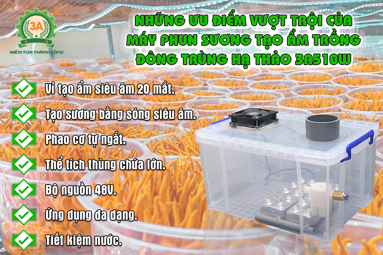 Máy Phun Sương Tạo Ẩm Phòng Trồng Đông Trùng Hạ Thảo 3A510W Mới Nhất 2022