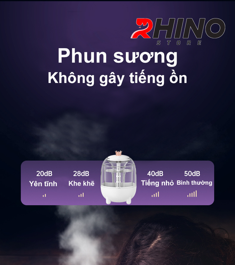 Mua tại TiktokMáy phun sương xông tinh dầu tạo ẩm Rhino H105 dung tích 1000ml không gây tiếng ồn, tích hợp đèn ngủ RGB nhiều màu Máy phun sương tạo ẩm là một thiết bị rất cần thiết đối với mọi gia đình trong thời tiết khô hanh, độ ẩm thấp với tác dụng chính là cấp thêm độ ẩm trong không khí. Từ đó giúp da không bị mất nước, khô nứt nẻ đặc biệt vùng môi và da mặt tạo ra môi trường sống thoải mái và dễ chịu nhất, không còn mặc cảm khi tiếp xúc với mọi người. Khi kết hợp với tinh dầu sẽ tạo ra bầu không khí dễ chịu, tránh nấm mốc và côn trùng ruồi muỗi (không nên lạm dụng và phải chọn đúng tinh dầu chất lượng tốt)