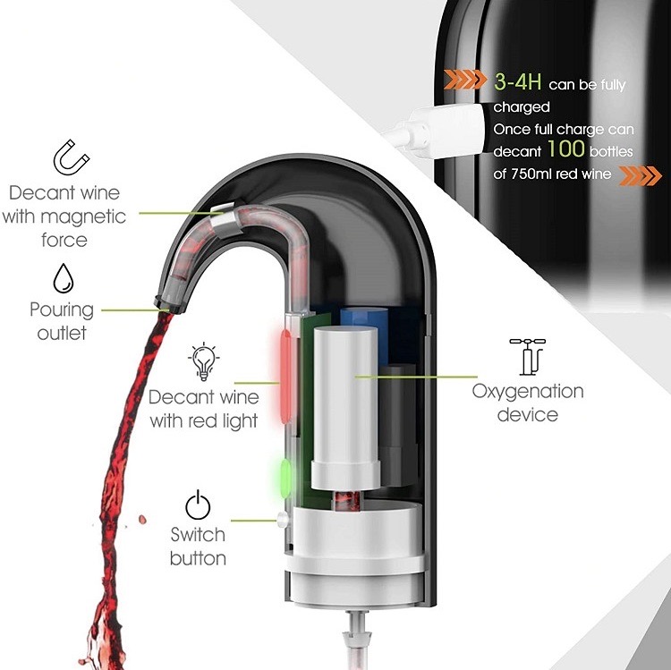 Máy rót rượu tự động điện tử dùng sạc USB SUNWAY SWA-EA01 Rượu vang cũng giống như con người cần thở để sống, vì vậy trước khi thưởng thức rượu vang hãy để rượu vang được