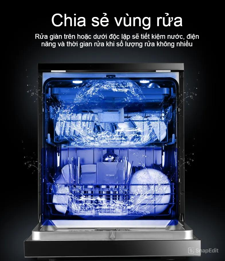• Cánh tay phun 3 tầng (trên/giữa/dưới) giúp rửa sạch mọi ngóc ngách.