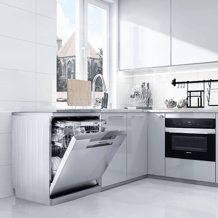 Máy rửa bát lắp đặt âm tủ Đặc tính sản phẩm: Dung tích 08 bộ bát đĩa Âu Hệ thống điều khiển cảm ứng toàn diện 2 khay chứa cơ động Công nghệ rửa xịt