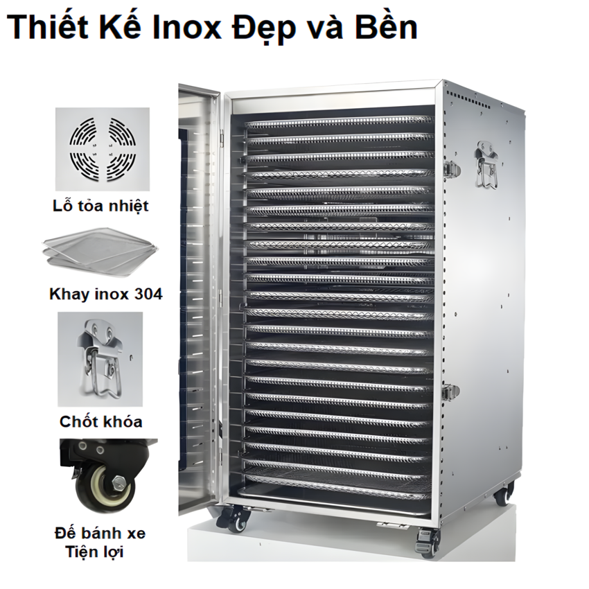Trên tay máy sấy thực phẩm 16 khay inox và 12 khay inox, hàng chính hãng