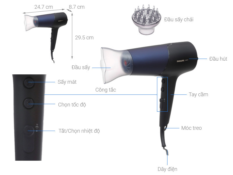 ✨Máy sấy tóc 2300W Philips BHD510/00 - Hàng Chính Hãng