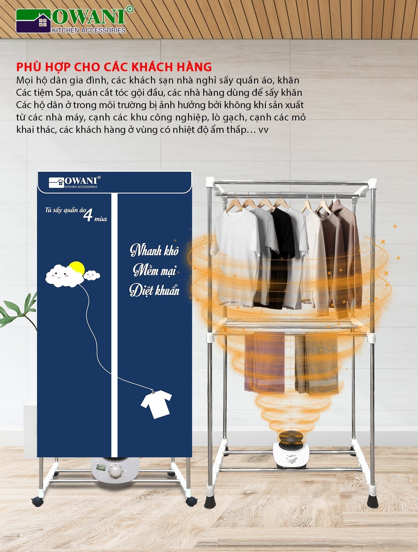 ĐẶC ĐIỂM NỔI BẬT: - Công dụng: làm khô nhanh quần áo, loại bỏ mùi hôi khó chịu, bụi bẩn trên quần áo. - Sử dụng bộ phát điện ổn định PTC, tiết kiệm điện. -