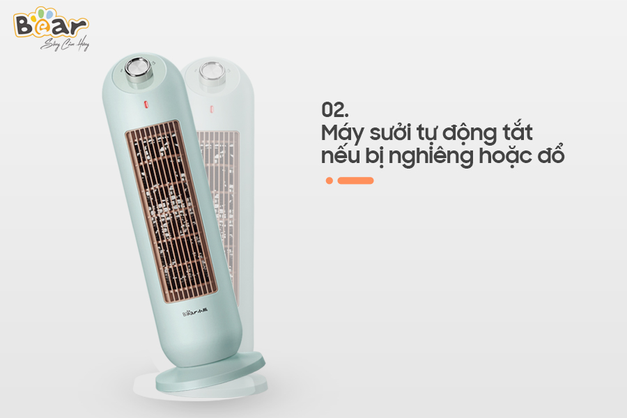 Quạt sưởi Bear DNQ-C20B1, không còn nỗi lo gặp sự cố như chập điện, cháy bỏng khi chạm vào, đổ ngã máy sưởi gây cháy nổ Công nghệ hiện đại được tích hợp trong quạt sưởi gốm Bear, đem đến sự tiện nghi và an toàn cho cả gia đình bạn.