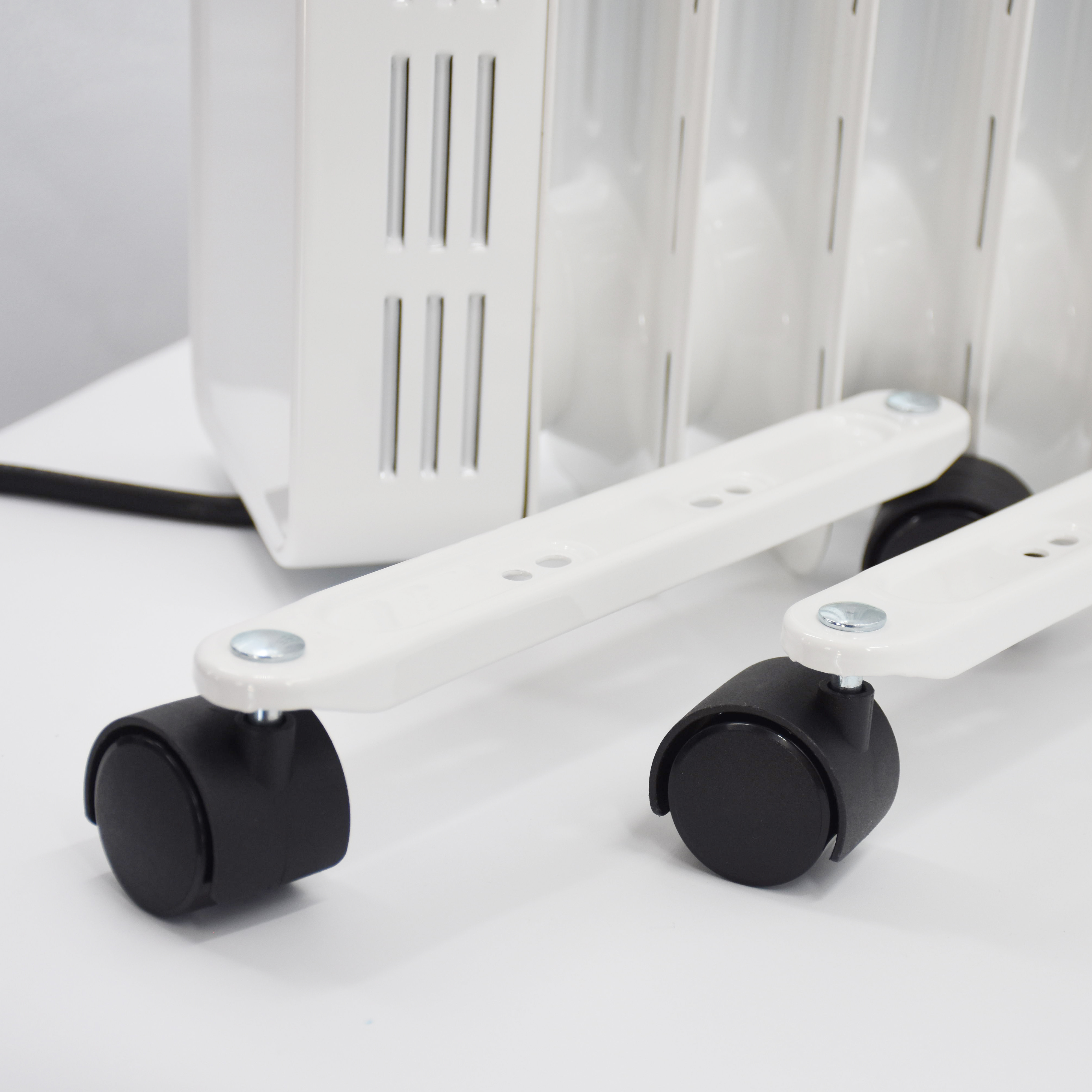Máy sưởi dầu Tiross TS9221 sở hữu thiết kế nhỏ gọn, tông màu trắng trang nhã tối giản phù hợp sử dụng tại các không gian như bệnh viện, gia đình, phòng khám, văn phòng... Bên dưới, máy được trang bị 4 bánh xe chịu lực chắc chắn, có thể xoay 360 độ giúp bạn có thể di chuyển thiết bị qua các vị trí mong muốn mà không tốn nhiều sức lực.