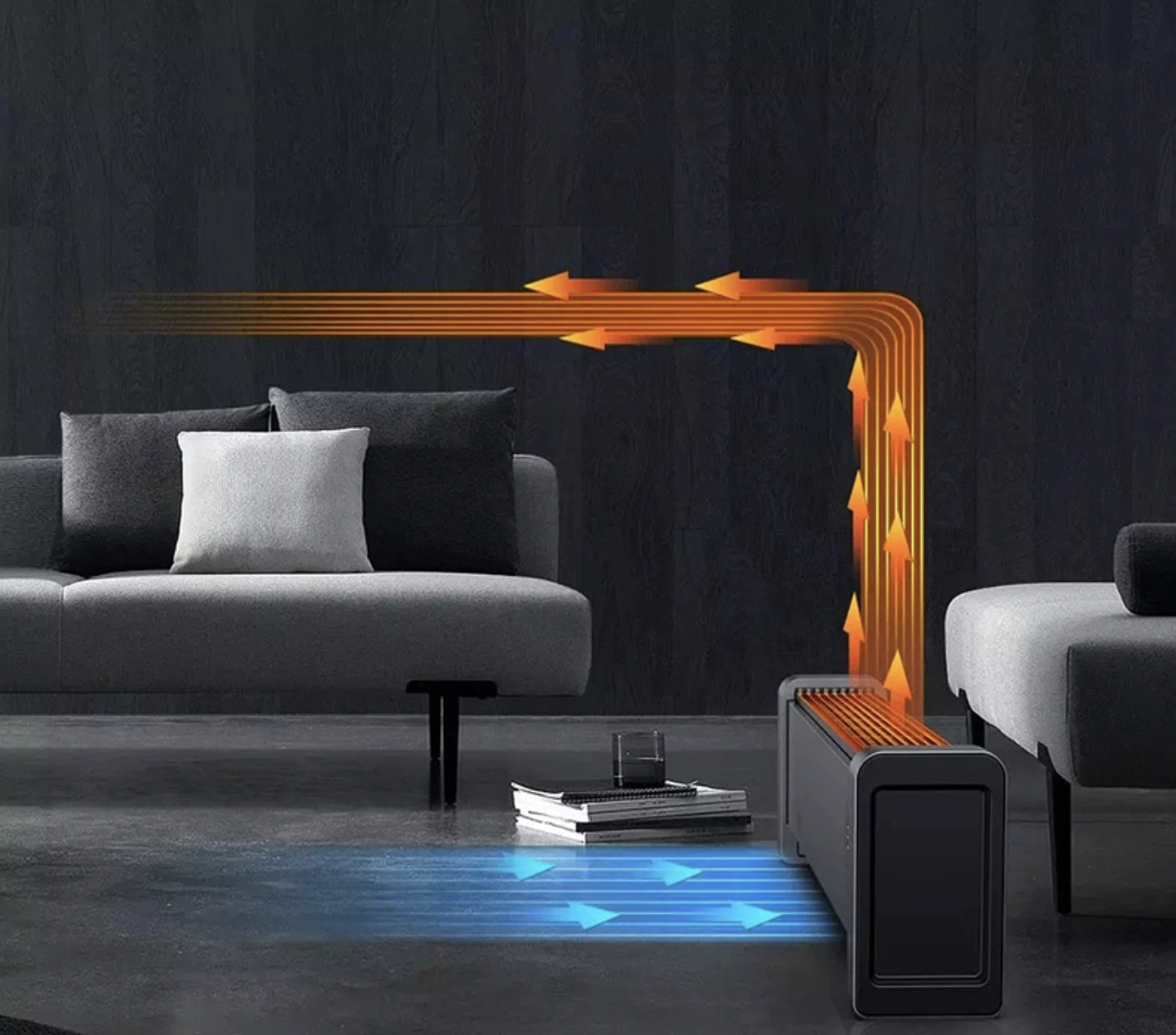 Hệ thống sưởi trên diện rộng: Sử dụng nguyên lý chênh lệch mật độ giữa dòng làm mát và dòng sưởi, sự lưu thông đối lưu không khí được thực hiện.
