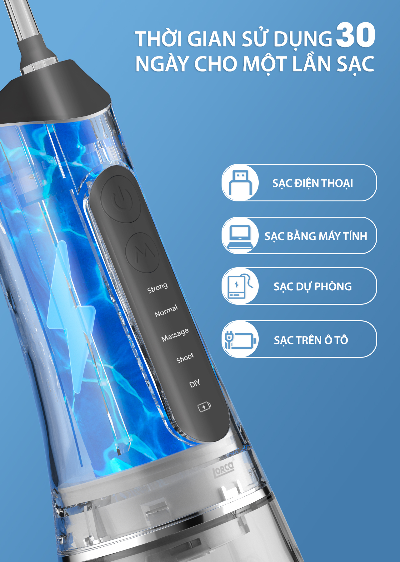 - Tăm nước Lorca TA-9109WT là giải pháp hoàn hảo cho việc chăm sóc răng miệng tại nhà. Với những tính năng hiện đại, đa dạng chế độ sử dụng và thiết kế tiện lợi, sản phẩm này chắc chắn sẽ đáp ứng tốt nhu cầu vệ sinh răng miệng hàng ngày của bạn và gia đình. Cam kết của Lorca: