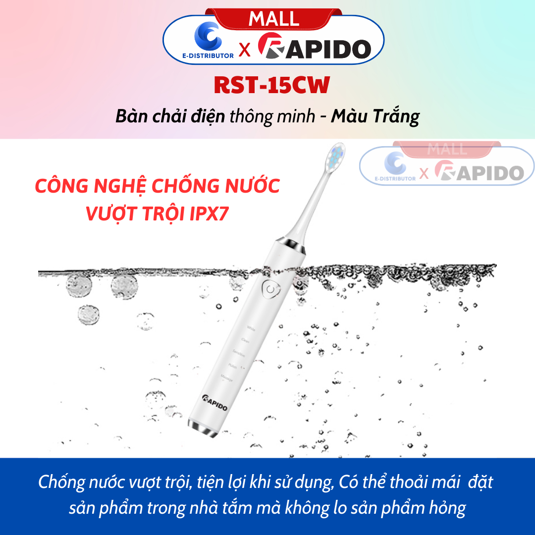 ✨Máy Tăm nước cầm tay Rapido RWG150/RWW-300 - Bàn chải điện thông minh RST-15CW Trắng/RST-15WB Đen - Hàng Chính Hãng - bảo hành 6 tháng