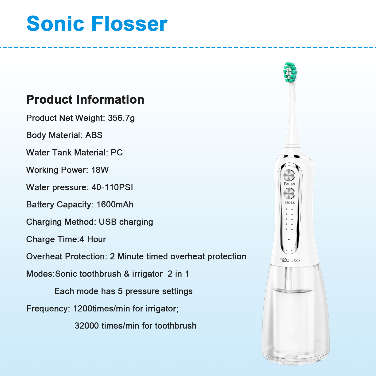 Máy tăm nước kết hợp bàn chải điện H2ofloss HF-S01 là một phát minh đầy sự sáng tạo của thương hiệu H2ofloss. Sản phẩm này là sự kết hợp vô cùng lý tưởng của hai sản phẩm chăm sóc răng miệng thiết yếu hiện nay là tăm nước và bàn chải điện. Thiết kế 2 trong 1 tạo sự tiện lợi khi bạn chỉ cần đem 1 máy duy nhất nhưng vẫn đáp ứng đủ nhu cầu làm sạch răng miệng thay vì phải đem theo cả 2 thiết bị như trước.