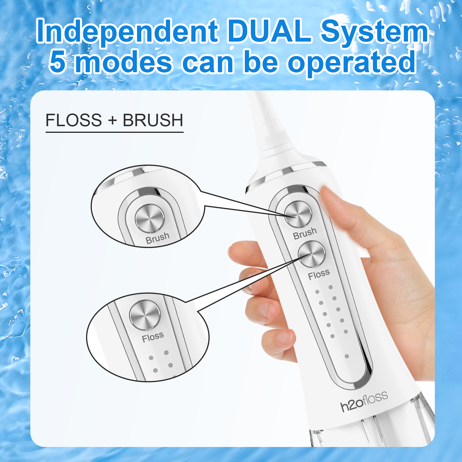 Hệ thống kép vận hành độc lập với 5 chế độ của tăm nước và 5 chế độ của bàn chải.