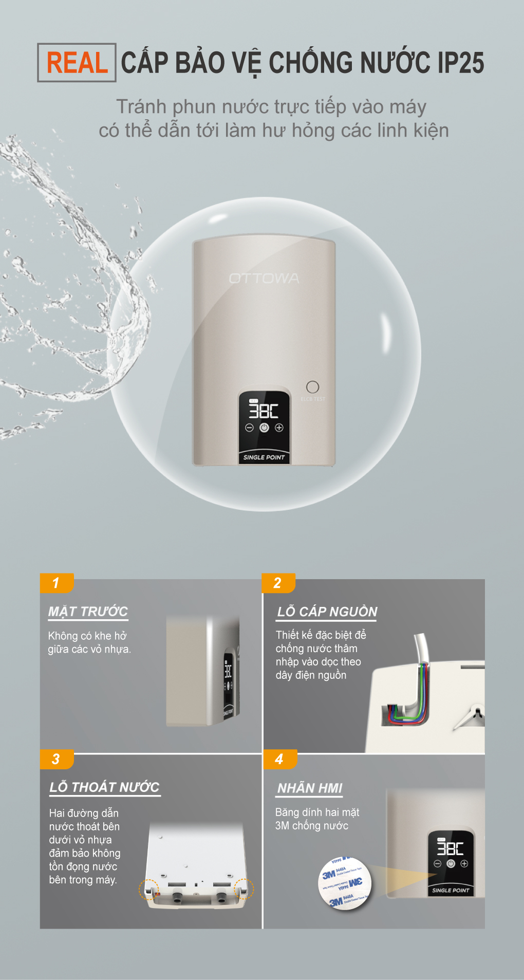 - Đạt cấp độ bảo vệ IP25 thật