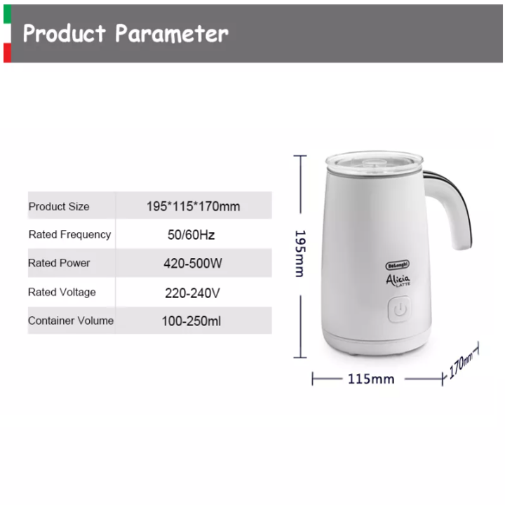 - Bình đánh sữa lạnh Delonghi Alicia EMF2.W là giải pháp lý tưởng cho bạn để chuẩn bị một lớp bọt thơm ngon, xốp mịn ngay tức thì. Máy đánh sữa mini Delonghi Alicia Latte EMF2 có khả năng làm nóng sữa và tạo bọt dày đặc chỉ trong vài giây. Delonghi Alicia EMF2.W hoạt động với 1 nút duy nhất và có 3 chế độ vận hành tùy theo nhu cầu của bạn: