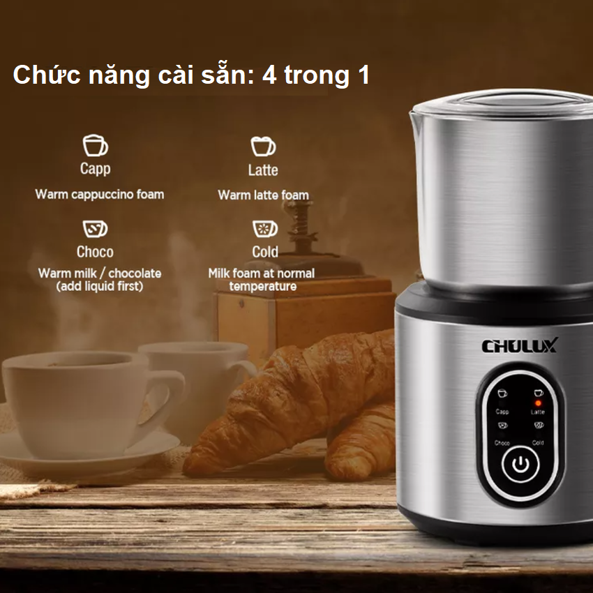 ✨Máy tạo bọt sữa chuyên nghiệp dùng cho quán 4 trong 1 thương hiệu Chulux QF-MF221118 - HÀNG NHẬP KHẨU