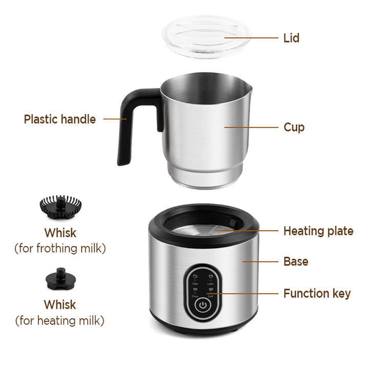 Máy tạo bọt sữa chuyên nghiệp dùng cho quán 4 trong 1chất liệu Inox 304 và nhựa ABS JMF-988S - Máy tạo bọt sữa theo quy trình sử dụng hơi nước nóng để làm nóng