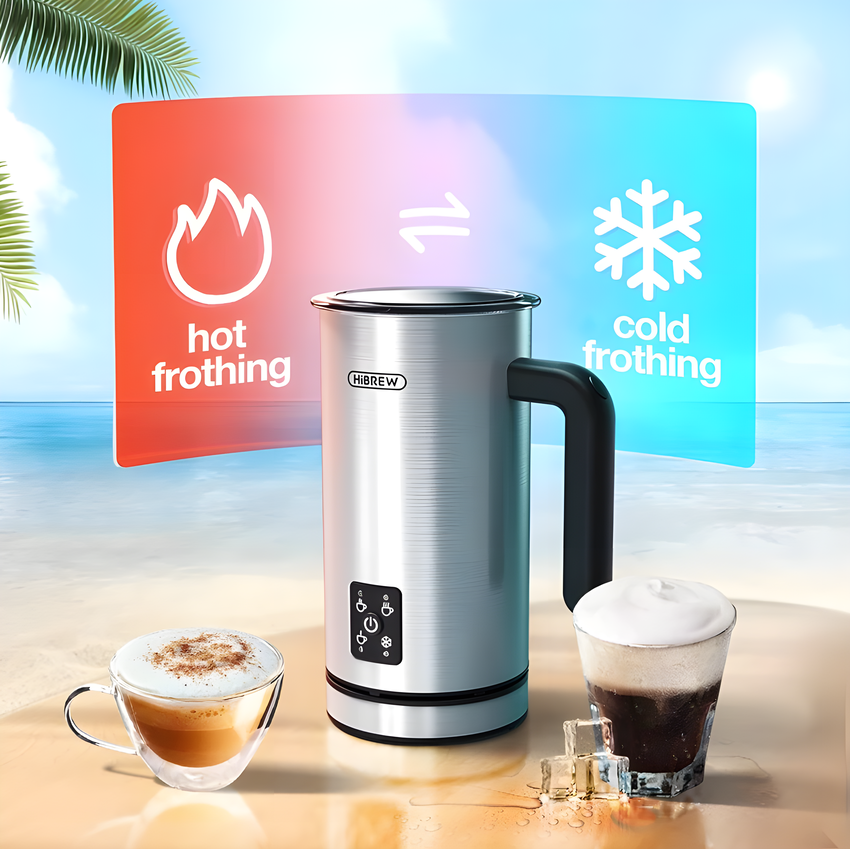 - Máy tạo bọt sữa Nóng và Lạnh 4 trong 1 HiBREW M3A là một sản phẩm được thiết kế có thể tạo bọt sữa cho đồ uống sữa nóng và lạnh. Máy sở hữu tới 4 chức năng bao gồm: tạo bọt sữa nóng cho latte macchiato, tạo bọt sữa nóng cho cappuccino thêm bọt, tạo bọt sữa lạnh cho cà phê đá hoặc frappé, tạo sữa nóng như cacao, chocolate, latte… Với tính năng đa dạng này, bạn hoàn toàn có thể sử dụng máy để tạo ra những loại bọt sữa yêu thích cho gia đình và bạn bè.