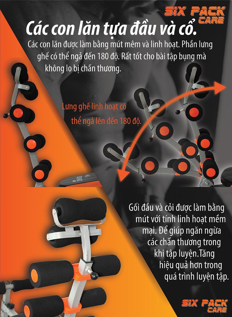 Máy tập cơ bụng đa năng New Six Pack Care là 1 chiếc máy 5 trong 1 tác động lên các cơ chính như cánh tay, đùi, bụng, lưng, vai, chân
