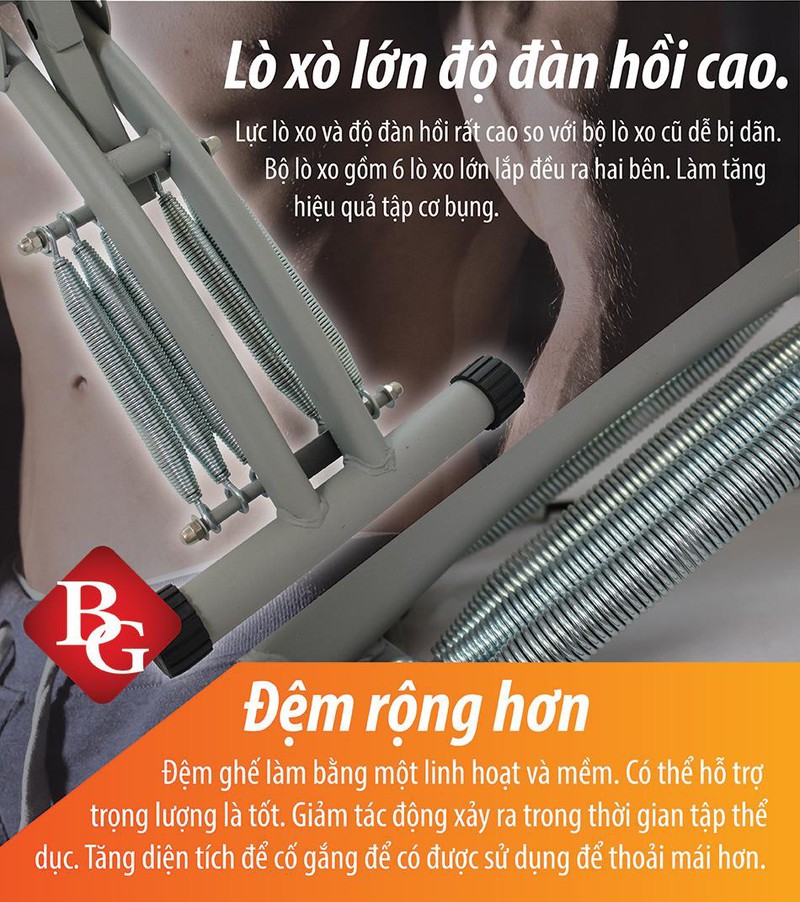 Lưng ghế đàn hồi tác động rất hiệu quả đến cơ bụng khi tập động tác gập bụng, với những động tác đó bạn sẽ có được cơ bụng săn chắc, thân hình thon gọn