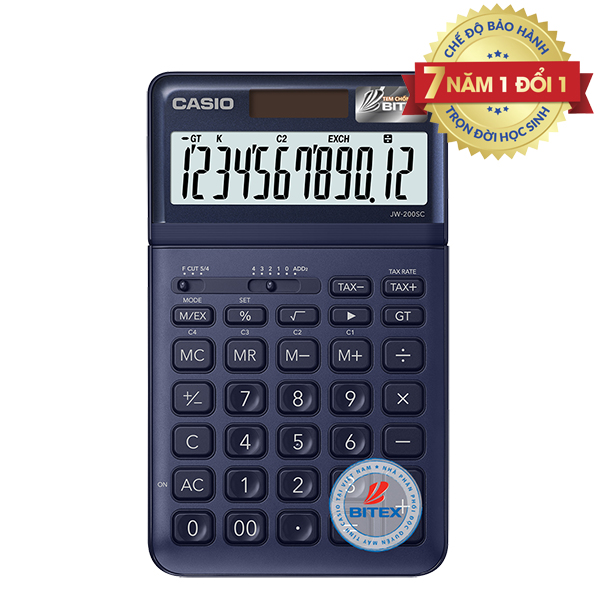Máy Tính Để Bàn Casio JW200SC sử dụng chế độ sử dụng năng lượng mặt trời được bật khi đủ sáng, chế độ pin được bật khi không đủ sáng.