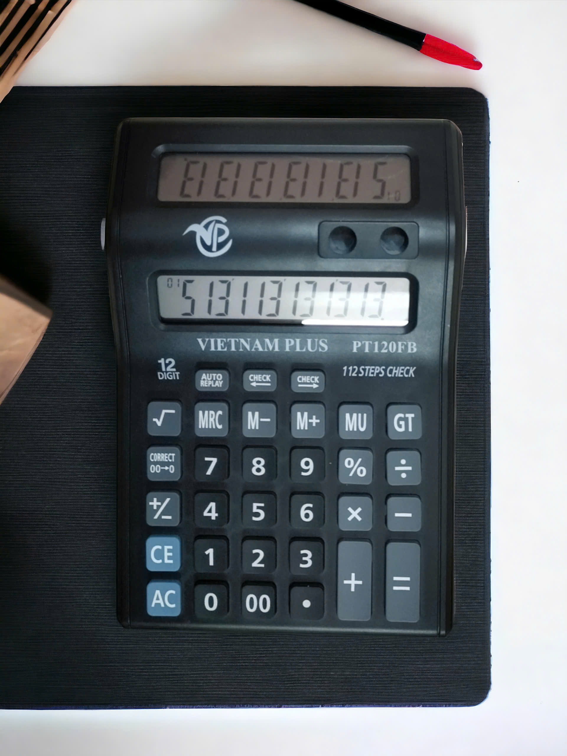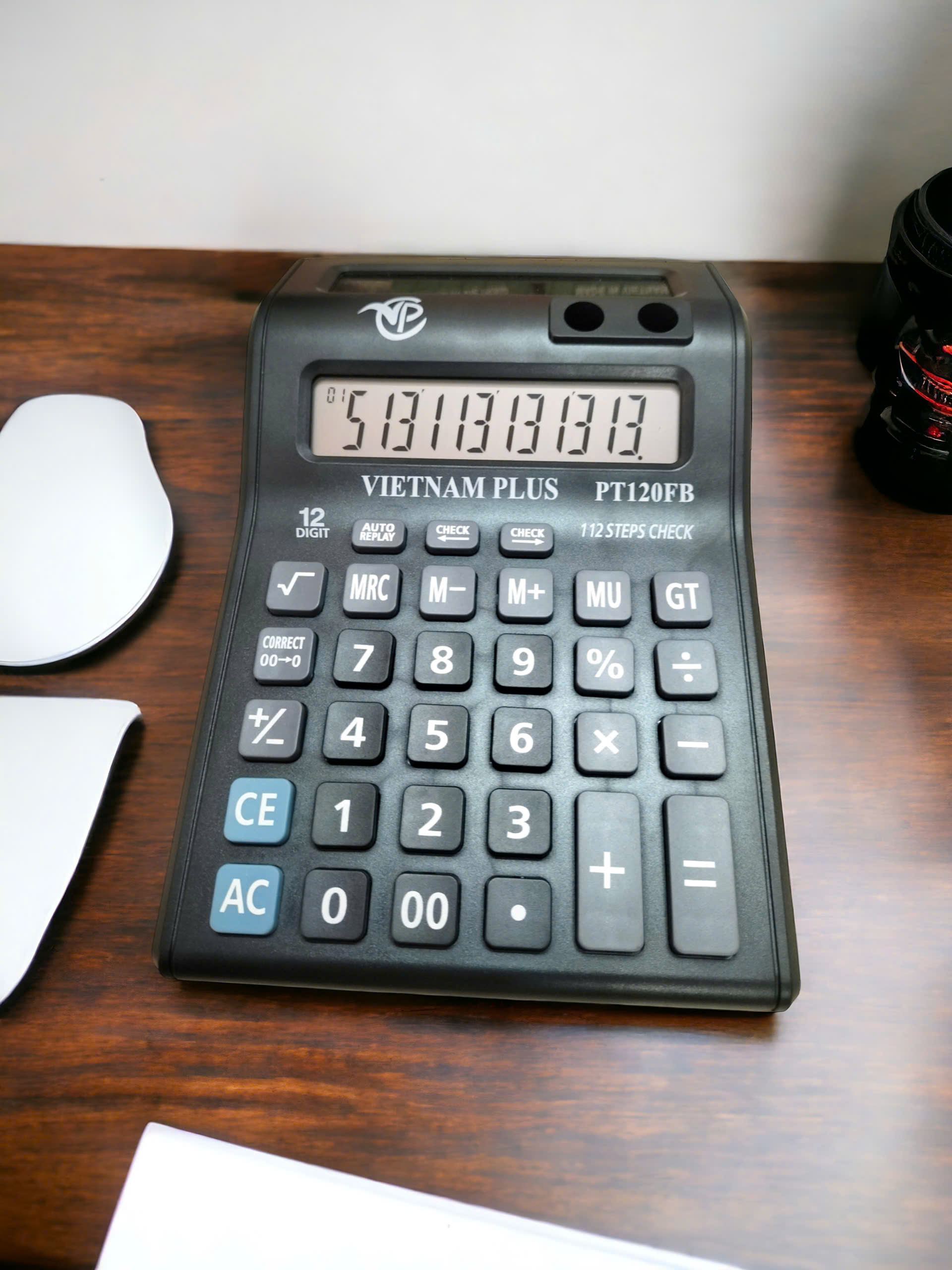THÔNG TIN CHI TIẾT Tên sản phẩm: Máy tính PT-120FB Thương hiệu: VINAPLUS Model: PT-120FB Bảo hành: 2 năm Kích thước (dài x rộng x dày): 219 x 146 x 38 mm Hiển thị: 12