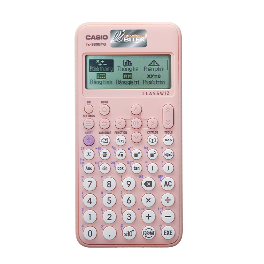 Máy Tính Casio Fx-880BTG - Màu Hồng Máy tính Casio fx-880BTG thuộc dòng máy tính khoa học ClassWiz của hãng máy tính CASIO. Máy tính Casio fx-880BTG đã ra đời với nhiều cải tiến về: thiết