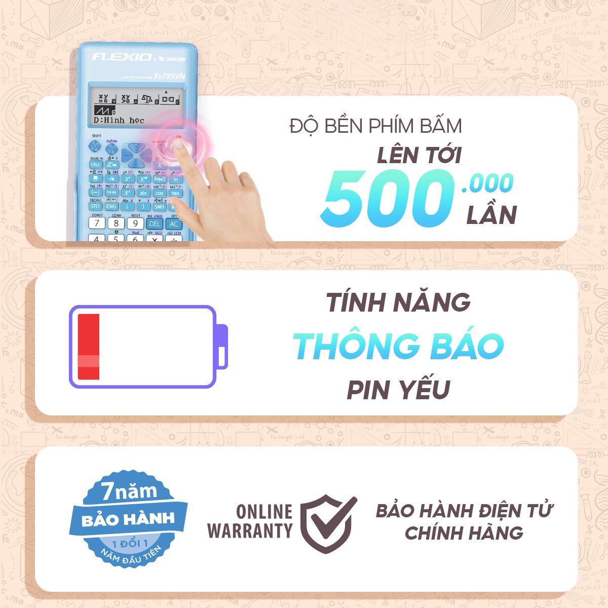 Máy Tính Kh Flexio Fx799Vn Trắng2/Luck Máy tính khoa học Flexio là chiếc máy tính có nhiều tính năng nhất, lên tới 529 tính năng trong đó bổ sung 17 tính năng nổi bật :