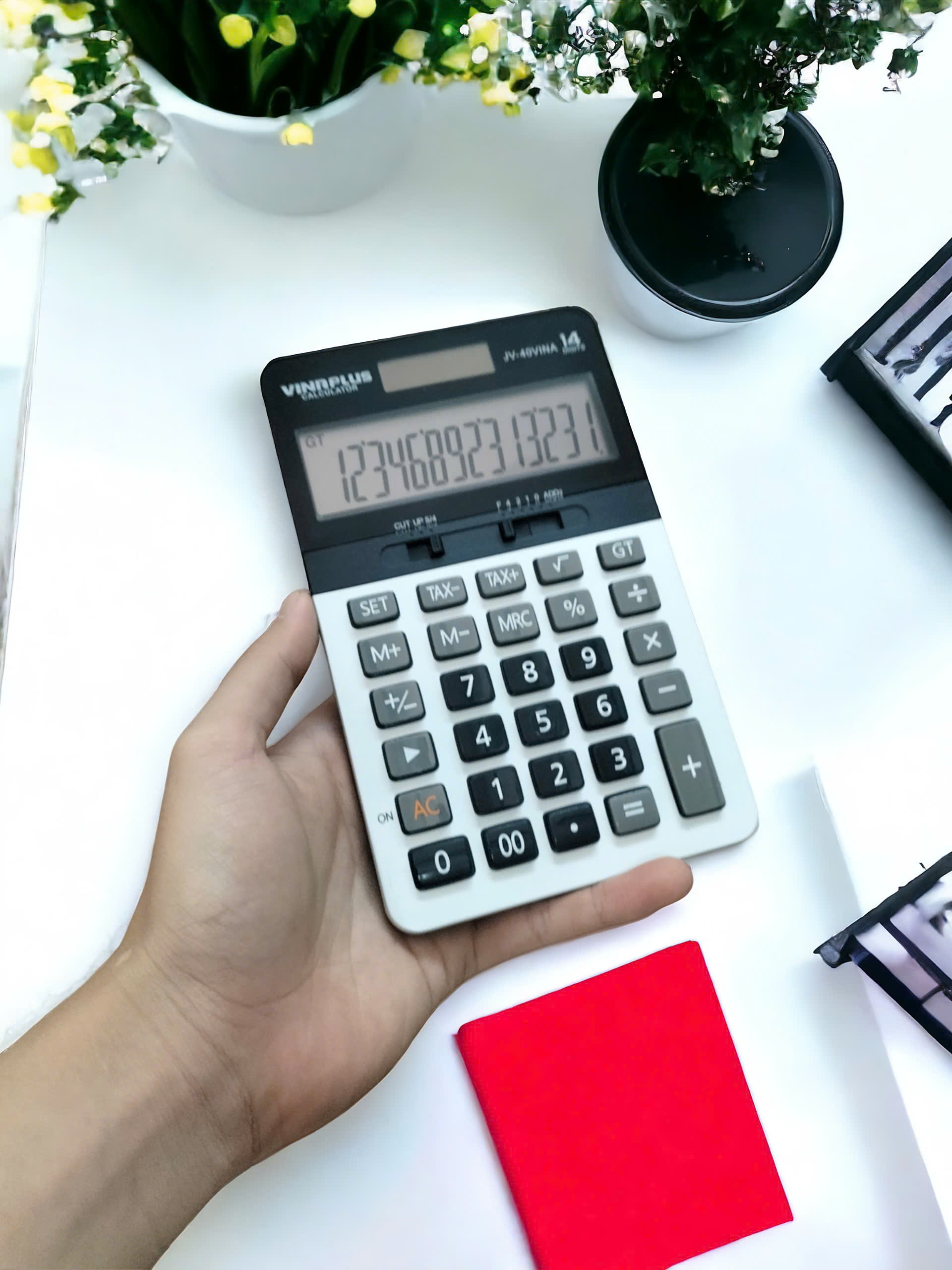 DÙNG CHO KẾ TOÁN - NHÂN VIÊN TÍNH TIỀN Kích thước to 12 số [Dài x Rộng x Cao] cm : 20.6 x 15 x 3.5 cm - Màn hình lớn dễ dàng