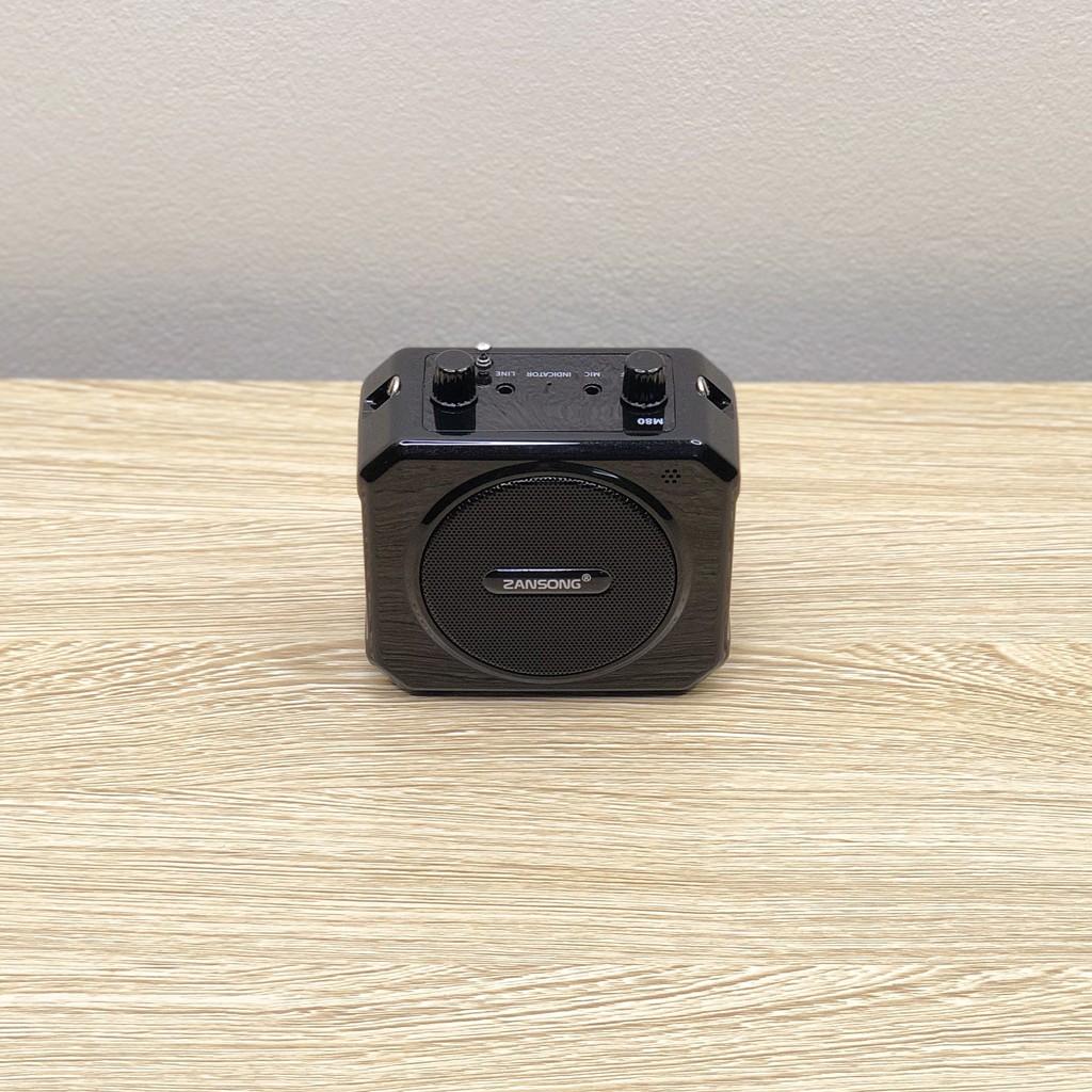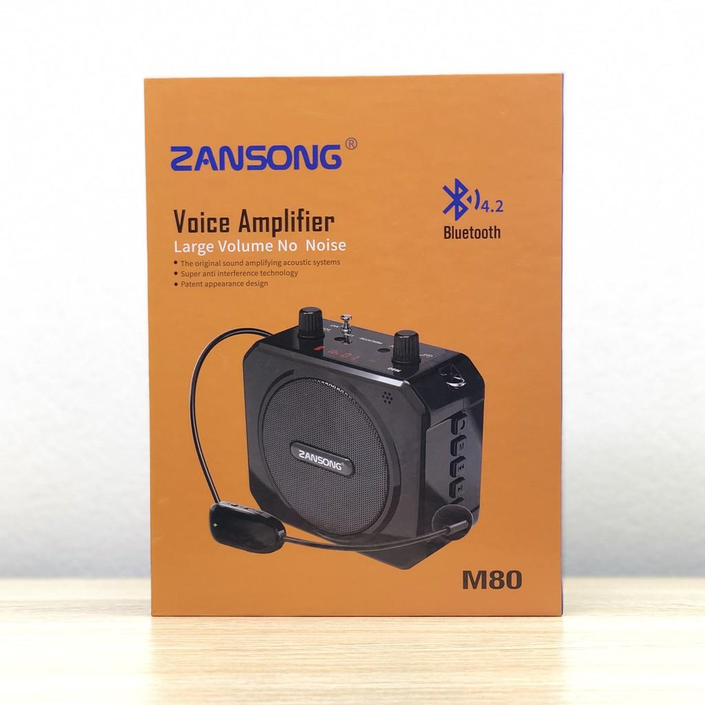 Máy trợ giảng Zansong M80 sở hửu vẻ ngoài nhỏ gọn, đẹp mắt khi để bàn cũng rất chắc chắn. Mặt trước loa tích hợp logo của hãng giúp người dùng dễ dàng hơn trong việc phân biệt được sản phẩm chính hãng hay kém chất lượng. Đây là sản phẩm sử dụng micro đeo tai tích hợp pin chất lượng cao kết hợp với hệ thống bo mạch điện tử thông minh nên kéo dài thời gian hoạt động lên đến 6-8 giờ, tùy từng mục đích sử dụng khác nhau, không xảy ra tình trạng vướng víu khi dùng dây.