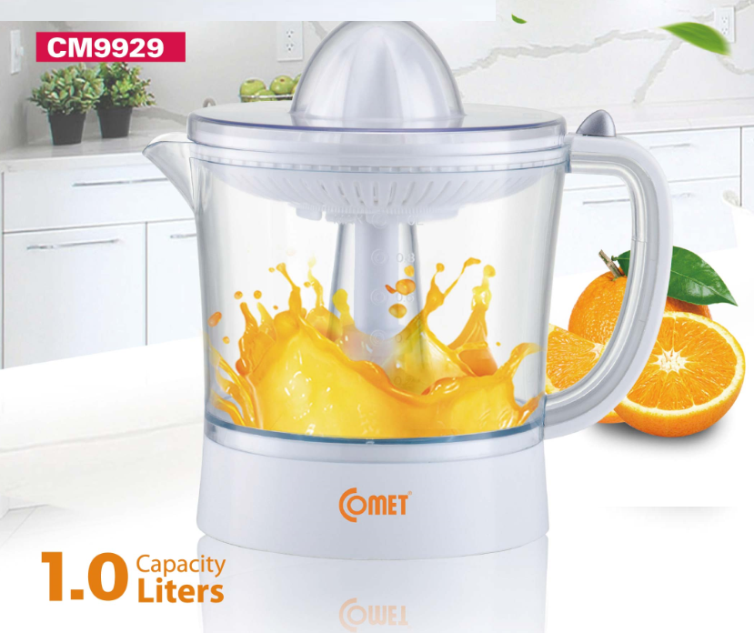 - Máy vắt cam COMET - CM9929 thiết kế tiện lợi, dễ sử dụng và nhưng không kém phần sang trọng, được chế tạo bằng loại nhựa AS trong suốt cao cấp an toàn khi tiếp xúc với thực phẩm, giúp bạn dễ dàng quan sát lượng nước trái cây bên trong khi đang vắt hoặc khi sử dụng.