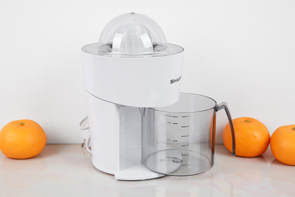 Máy vắt cam Sharp thiết kế gọn nhẹ, màu trắng sáng tươi trẻ, có tay cầm chắc chắn Chuyên dụng để vắt các loại hoa quả họ cam như cam, bưởi, quýt, chanh,… đáp ứng nhu