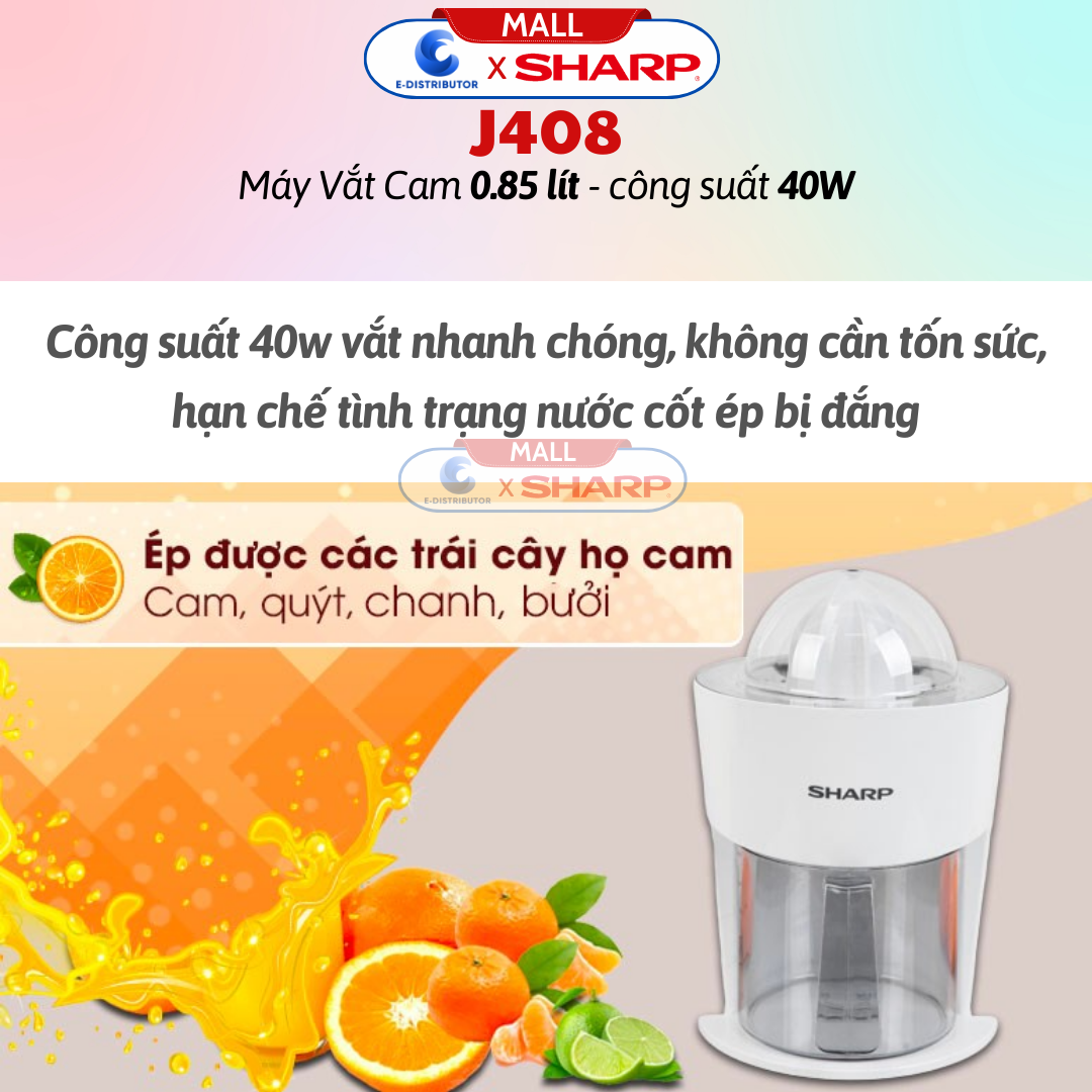 THÔNG TIN SẢN PHẨM Thông số kỹ thuật Máy vắt cam Sharp 40W EJ-J408-WH