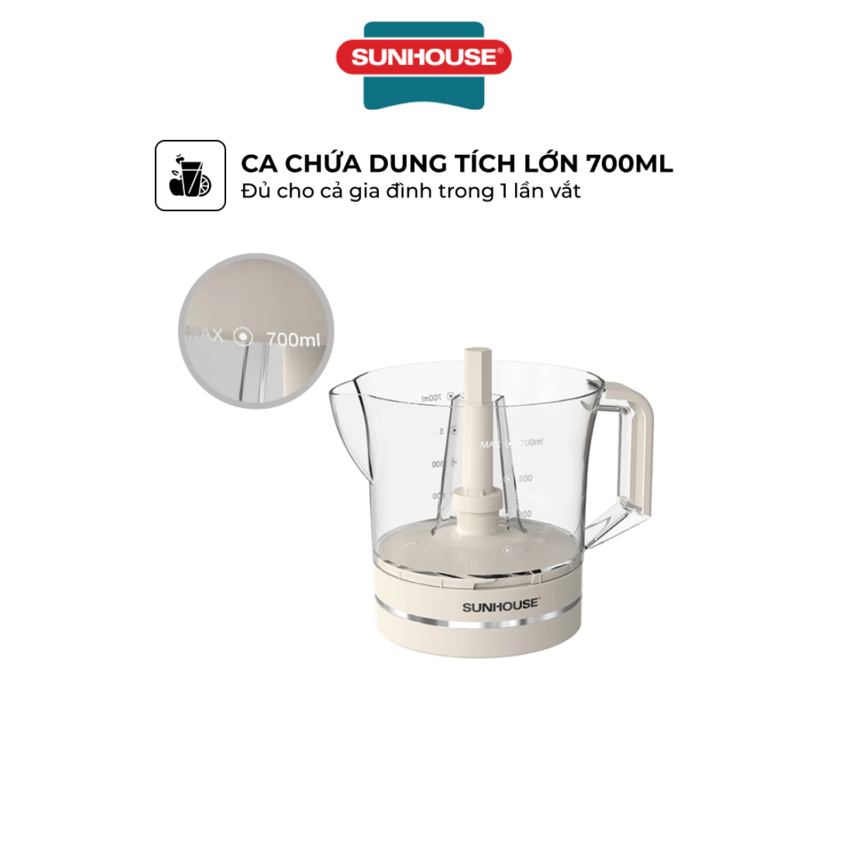 THIẾT KẾ NHỎ GỌN & TIỆN DỤNG 2 đầu vắt lớn, nhỏ linh hoạt - Vắt được đa dạng các loại hoa quả Máy vắt cam SUNHOUSE SHD5510 có thiết kế 2 đầu vắt kích thước khác nhau, phù hợp với hầu hết các loại quả có múi, mang lại sự linh hoạt và tiện lợi cho người tiêu dùng. Đầu vắt lớn phù hợp để vắt cam, trong khi đầu vắt nhỏ giúp vắt chanh, quýt dễ dàng. Ca chứa dung tích lớn 700ml Với dung tích ca chứa lên đến 700ml, máy vắt cam SUNHOUSE SHD5510 có thể đáp ứng nhu cầu cho cả gia đình bạn chỉ trong một lần vắt. Đây là giải pháp lý tưởng cho những buổi sáng bận rộn hoặc các bữa tiệc gia đình, giúp bạn tiết kiệm được thời gian và công sức mà vẫn có thể thưởng thức những ly nước cam, nước chanh thơm ngon. Chân đế chống trượt an toàn Chân đế của máy được thiết kế chống trượt, giúp máy vận hành êm ái, tránh rung lắc và giảm tiếng ồn đáng kể khi hoạt động. Thiết kế mang lại sự an toàn và tiện lợi cho người sử dụng, đặc biệt là khi bạn muốn vắt một lượng lớn trái cây.   CÔNG NĂNG TUYỆT VỜI - PHÙ HỢP CHO MỌI GIA ĐÌNH Tính năng tự động đảo chiều thông minh - Vắt kiệt và sạch từng tép Máy vắt cam SUNHOUSE SHD5510 có tính năng tự động đảo chiều thông minh, giúp vắt kiệt và sạch từng tép, đảm bảo lượng nước ép được tối đa từ mỗi quả. Tính năng này không chỉ tiết kiệm thời gian mà còn tối ưu hiệu quả sử dụng cho người dùng. Dễ dàng vệ sinh Các bộ phận của máy có thể tháo rời dễ dàng, giúp việc vệ sinh trở nên nhanh chóng và tiện lợi hơn sau mỗi lần sử dụng.