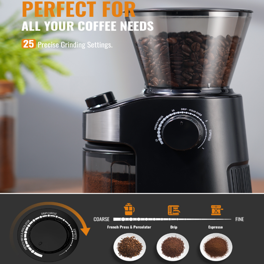 Máy xay hạt cà phê Espresso cao cấp Shardor BD-CG018 Hệ thống nấc điều chỉnh cỡ xay linh hoạt, tiện dụng cho mọi nhu cầu pha chế - Để có được tách cà phê Espresso