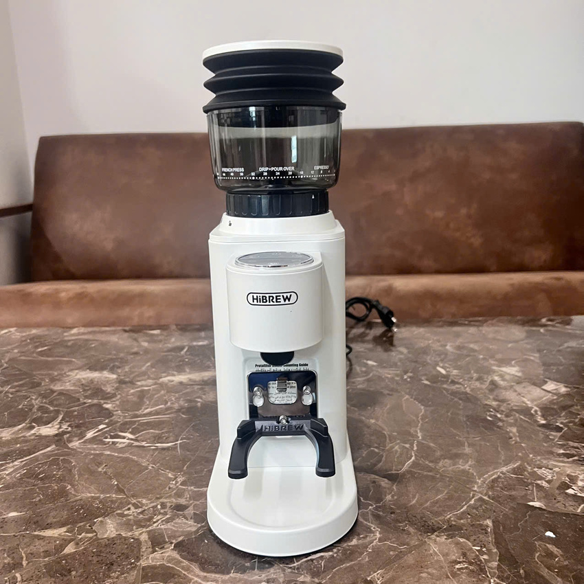 - Những ai đam mê cà phê thế giới đều biết, để có một ly cà phê ngon thì 60% quyết định thành bại ở chiếc máy xay. Còn lại 40% sẽ do máy pha nếu đưa chúng lên bàn cân - Cũng như khi pha cà phê bằng máy, độ mịn của cà phê hạt khi xay ra dạng bột cần phải đủ mịn để có thế chiết xuất ra 1 ly cà phê espresso chuẩn Ý từ 8-20 Bar. Tạo đủ áp suất trong tay cầm, để chiết hết tinh chất crema trong bột cà phê. - Máy xay hạt cà phê Espresso chuyên nghiệp cao cấp HiBREW G7 sẽ là 1 lựa chọn hoàn hảo cho những ai đam mê cà phê thứ thiệt. Với việc sở hữu hàng loạt các đặc điểm nổi trội hiệu quả