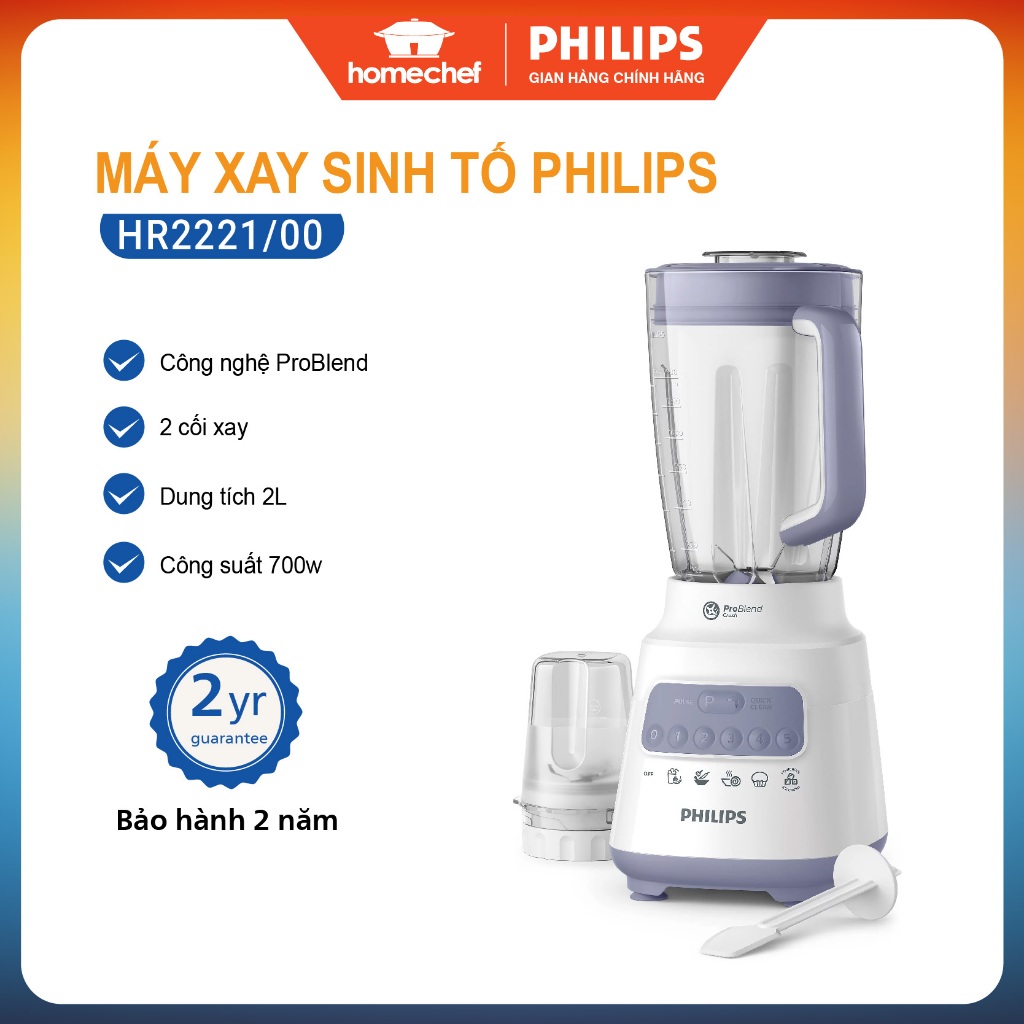 ✨Máy xay sinh tố Philips để bàn HR2221, công suất 700W, bảo hành 2 năm | Hàng chính hãng
