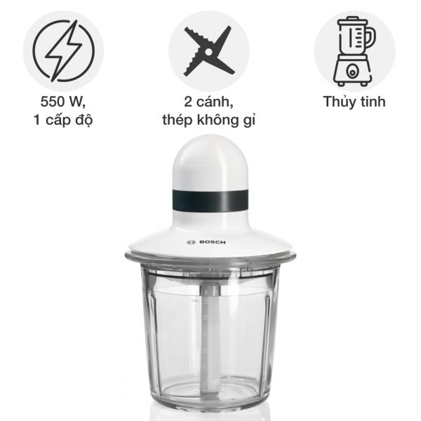 Thương hiệu Bosch Model MMR15A1 Sản xuất tại Slovenia Loại máy xay Máy xay thịt Chức năng - Xay thịt - Xay gia vị - Xay rau củ - Xay đá lạnh - Đánh bông