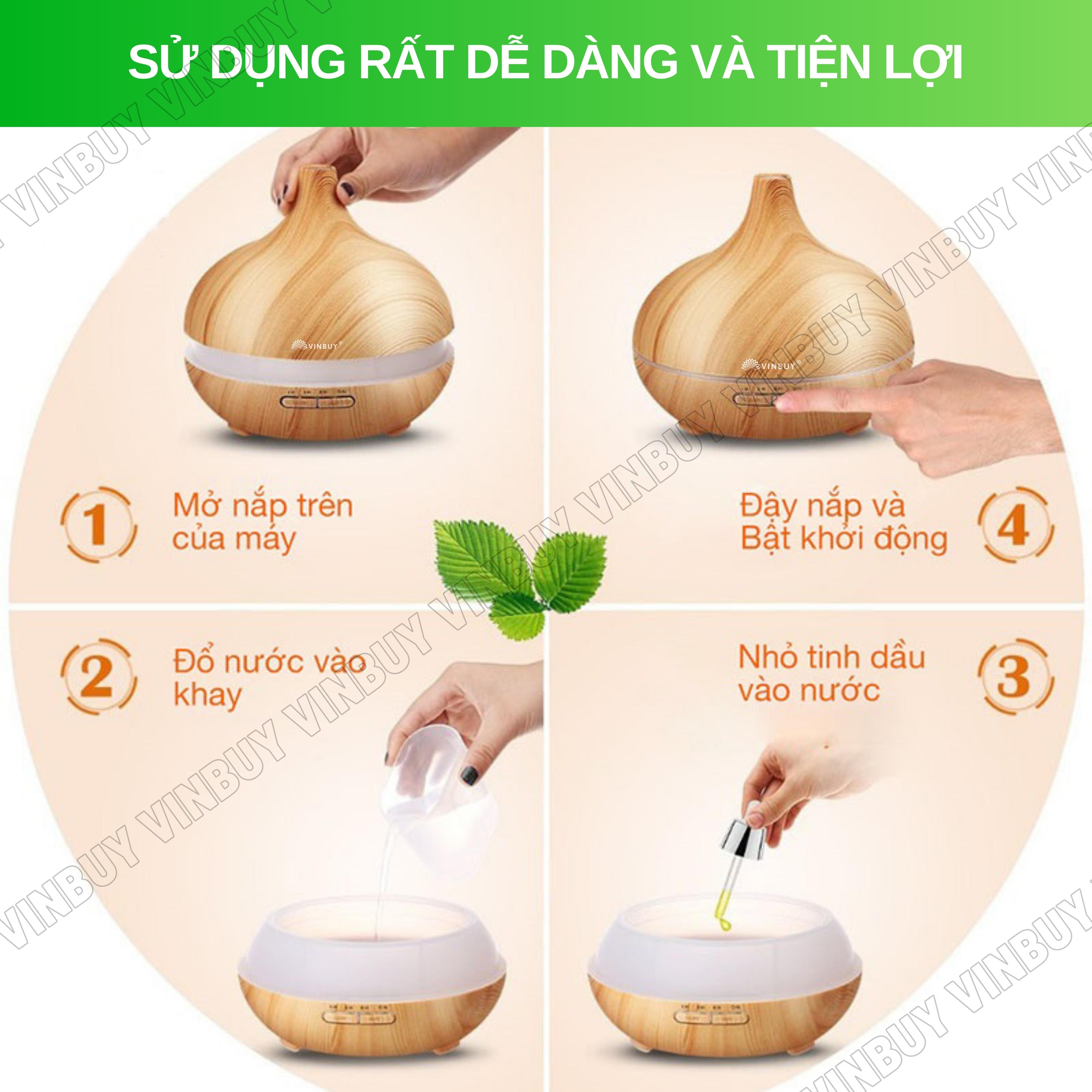 Máy xông tinh dầu VINBUY bầu tiên, máy phun sương tạo ẩm, máy xông tinh dầu phòng ngủ, spa, tự động, chuyên dụng phòng lớn led 07 màu - Hàng chính hãng