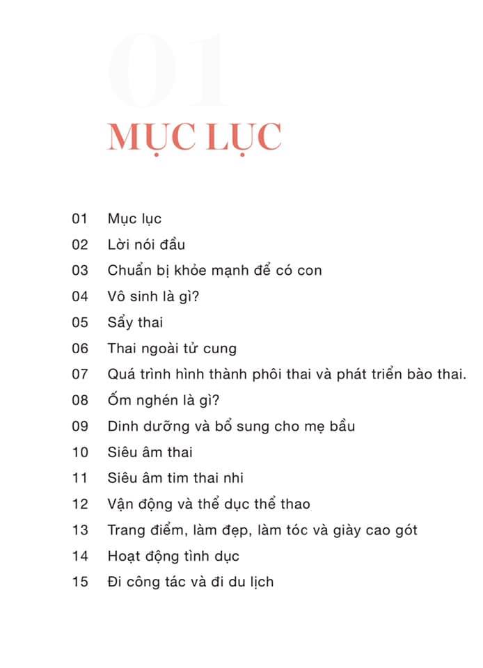 Cuốn sách giải đáp những vấn đề mà bà bầu gặp phải trong thai kì đầu, thai kì giữa, thai kì cuối một cách chuyên nghiệp; đồng thời nêu ra những mục cần chú ý