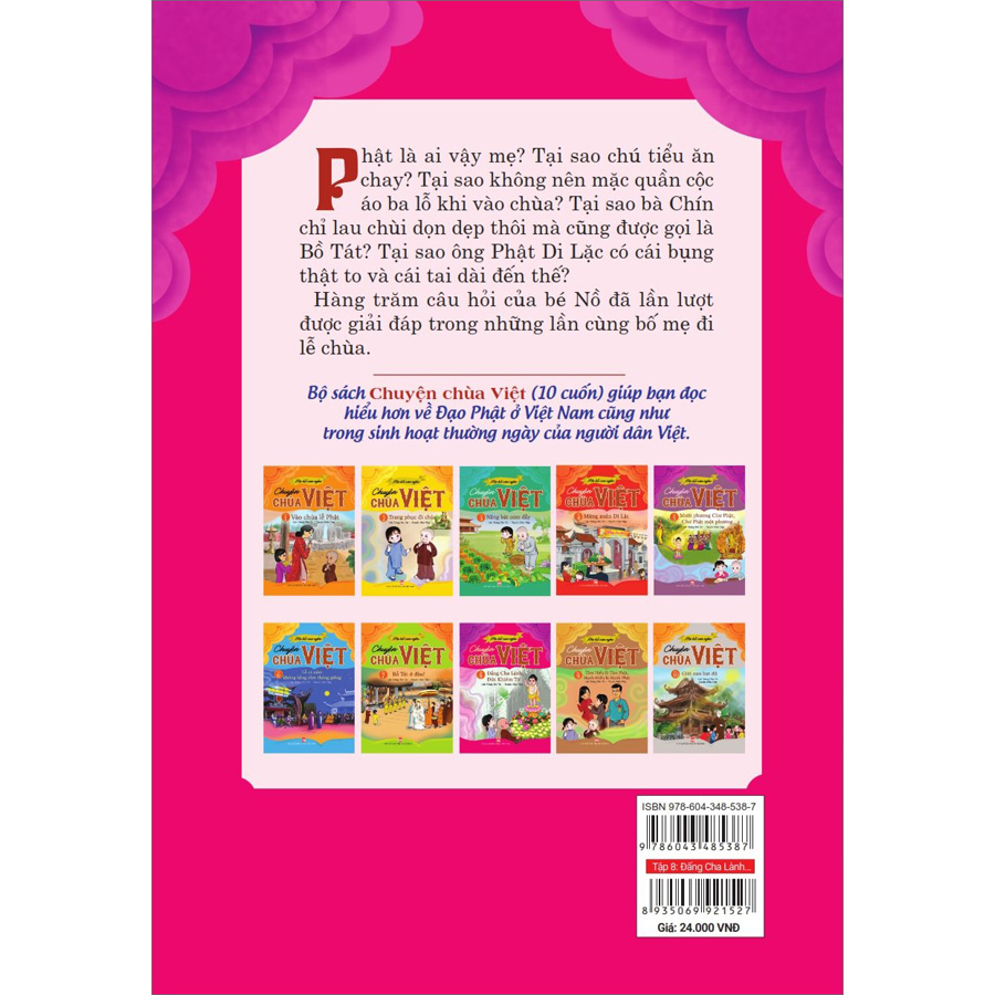 Thông qua câu chuyện bé Nồ cùng gia đình đi lễ chùa, vào chùa gặp Sư trụ trì và chú tiểu Tâm Tĩnh, bộ Mẹ kể con nghe – Chuyện chùa Việt lần lượt hé mở những kiến thức cơ bản về đạo Phật.
