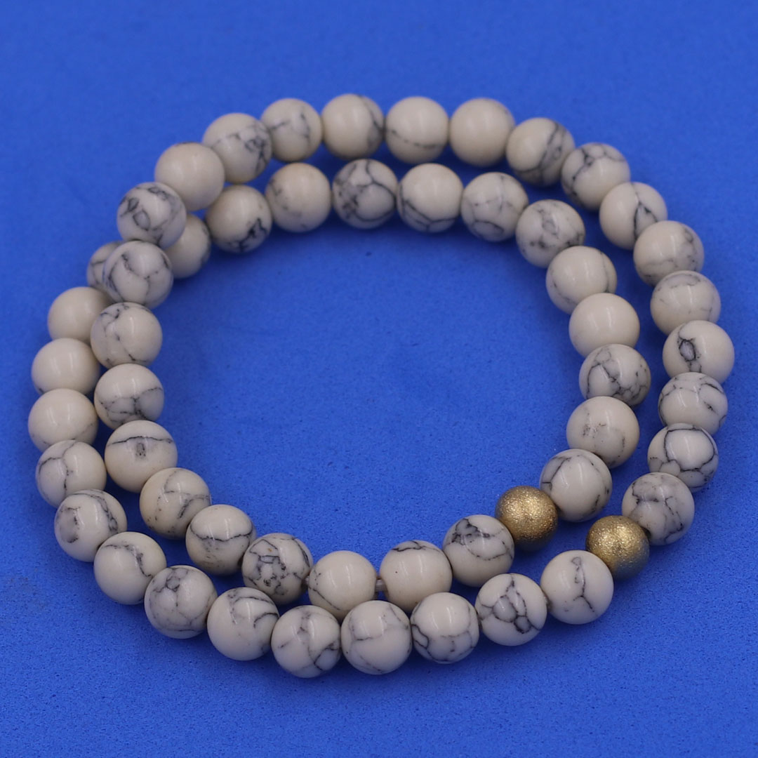 ✨[Mệnh Kim, Thủy] Vòng Chuỗi Đôi 6 Ly San Hô Trắng Sọc Charm Bi Inox VSHTRSHBD