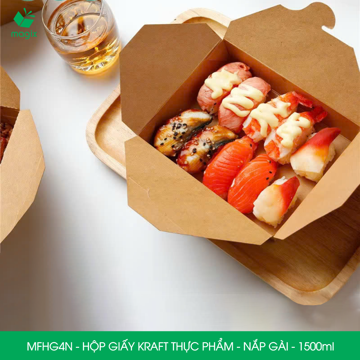 • MFHG4N - Hộp giấy Kraft đựng thực phẩm - Nâu 1.500ml (Miệng: 21.5x16 cm - Đáy: 19.5x14 cm - Cao: 4.8 cm)