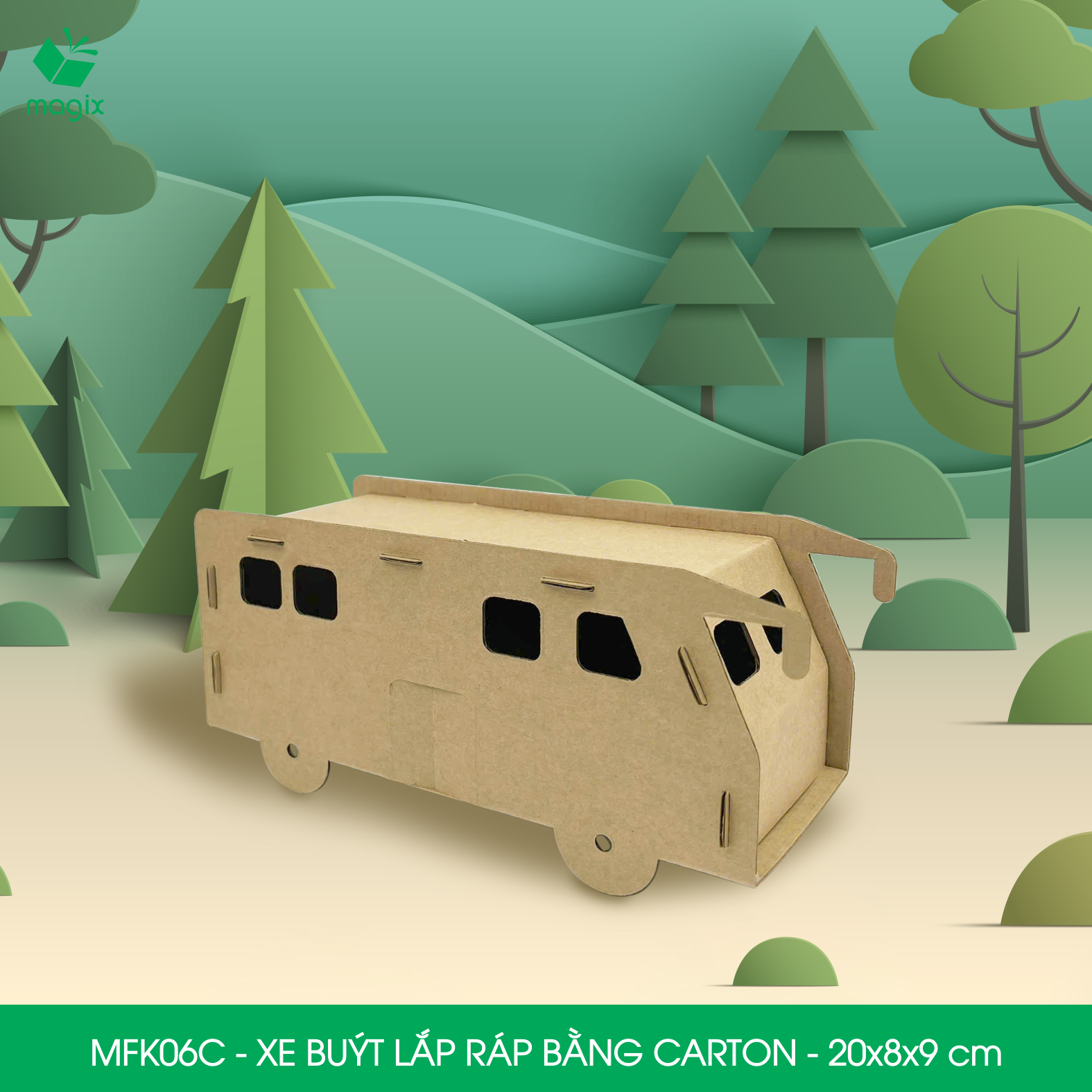 ✨MFK06C - Xe bus carton - 20x8x9 cm - Đồ chơi lắp ráp mô hình từ bìa carton cứng cao cấp